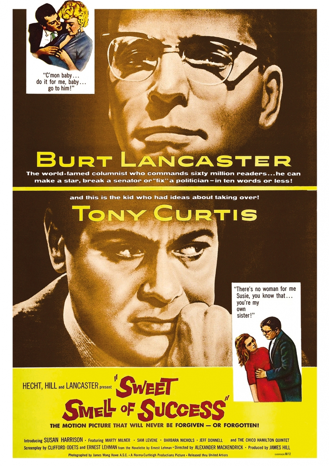 Sidney Falco (Tony Curtis), um agente de imprensa em decadência financeira e moral, tem tido dificuldade em ver os seus clientes mencionados na influente coluna de jornal de J.J. Hunsecker (interpretado por Burt Lancaster e baseado no famoso colunista social Walter Winchell) por ter falhado com a sua promessa de arruinar a relação que a irmã de Hunsecker mantém com um músico de jazz. Tido por muitos como o filme americano simultaneamente mais perspicaz e mais cínico dos anos cinquenta, Sweet Smell of Success foi escrito pelo famoso argumentista, Ernest Lehman, e pelo célebre dramaturgo de esquerda, Clifford Odets. Trata-se de uma análise sórdida do meio das relações públicas e do jornalismo, que invoca um mundo de crescente histeria e desilusão mordaz.